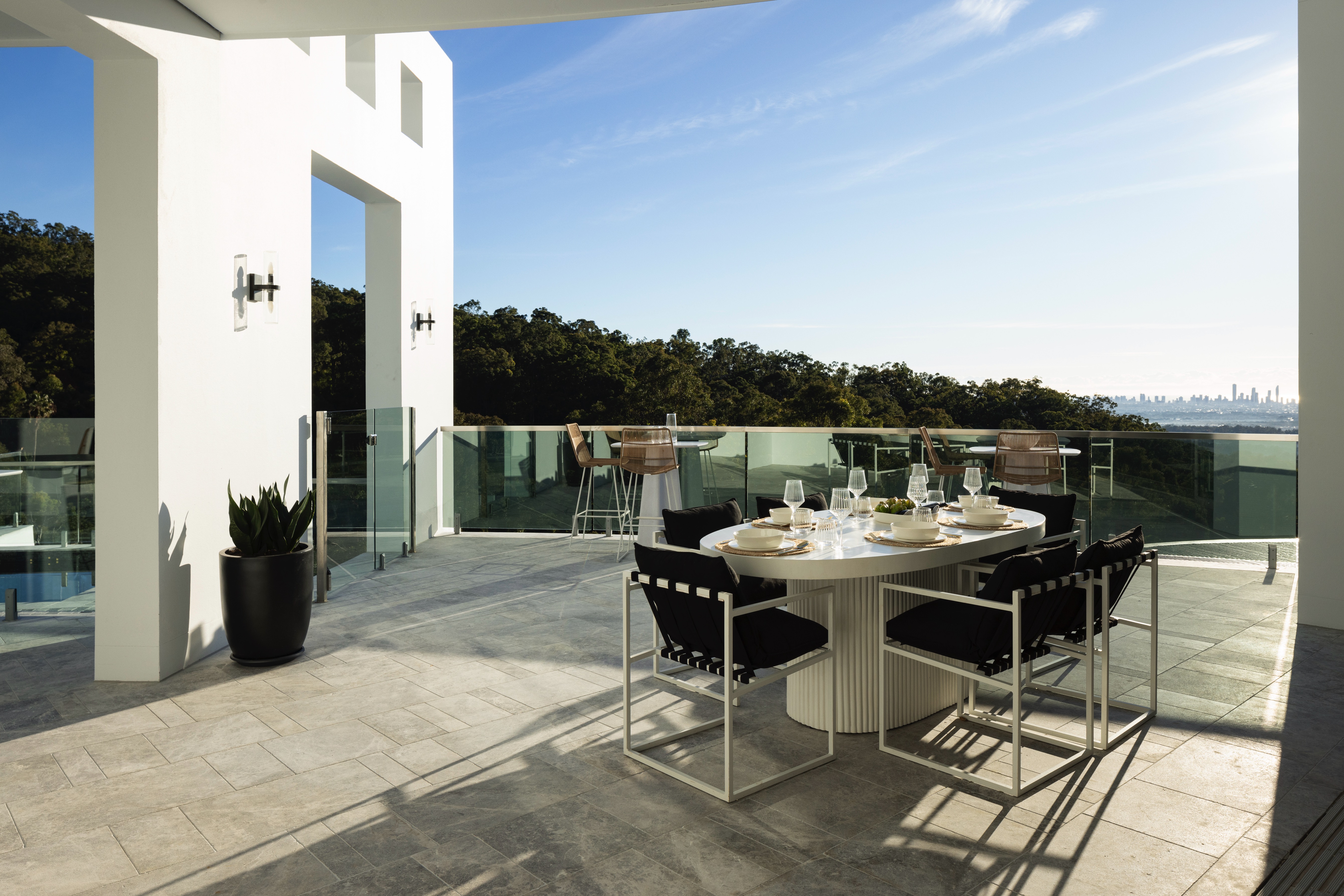 The poolside lounge is a generous outdoor living space that wraps around a 225 square metre curved balcony. With panoramic views across the skyline, vineyard and infinity pool, it is made for relaxed daytime entertaining. An integrated BBQ and refrigeration ensure you have everything at hand for effortless alfresco dining. Designed for elegance and ease, the space connects beautifully to its natural surrounds.
